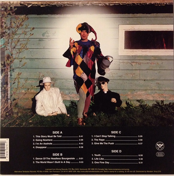I’ve been waiting a long time for the next Nomeansno. Their last, The Worldhood of the World (as such), was a veritable fantastic album so naturally I was waiting rather impatiently for this one to finally surface. Fortunately with a band like Nomeansno, they seldom disappoint and are proving age is only making them sharper and meaner. Dance of the Headless Bourgeoisie is basically a cross pollenation of their last and 1993’s Why Do They Call Me Mr. Happy?, with equal parts of punked out aggression and the epic length songs. And unlike their last, Nomeansno finally has some decent production that puts all their instruments in the right place without sacrificing their power. The first four tracks charge out of the gate with the steam of a locomotive, armed with a sense of melody (Rob Wright’s vocals have never sounded so powerful or menacing before) and their wacky sense of songwriting. The Wright brothers are still one of the best rhythm sections ever and guitarist Tom Holliston makes his presence known without resorting to some of the noisy dissonace that marked early Nomeansno. On the lengthy title track, which is a ransom note from a would-be kidnapper, Rob’s vocal acrobatics are easily the most impassioned and psychotic he’s ever done. On “The World Wasn’t Built in a Day”, the slow rumbling bass underlies a bizarre mental trip of the narrative. And on “I’m an Asshole”, Rob simply cuts to the chase lyrically. However, it’s the final four songs that really do it for me. “I Can’t Stop Talking” is a silly little ditty that shows Rob in fine talk-sing form and in the same spirit as “The Jungle” on Worldhood. Then comes the intense and gripping “The Rape”, which is an immeasurebly potent brew of musicianship and vocal madness. “Give Me the Push” is simple lyrically, but again Rob’s singing is the impetus for the song. The closer, “One Fine Day”, is just a heavy but happy song that ends the album on an upbeat note.