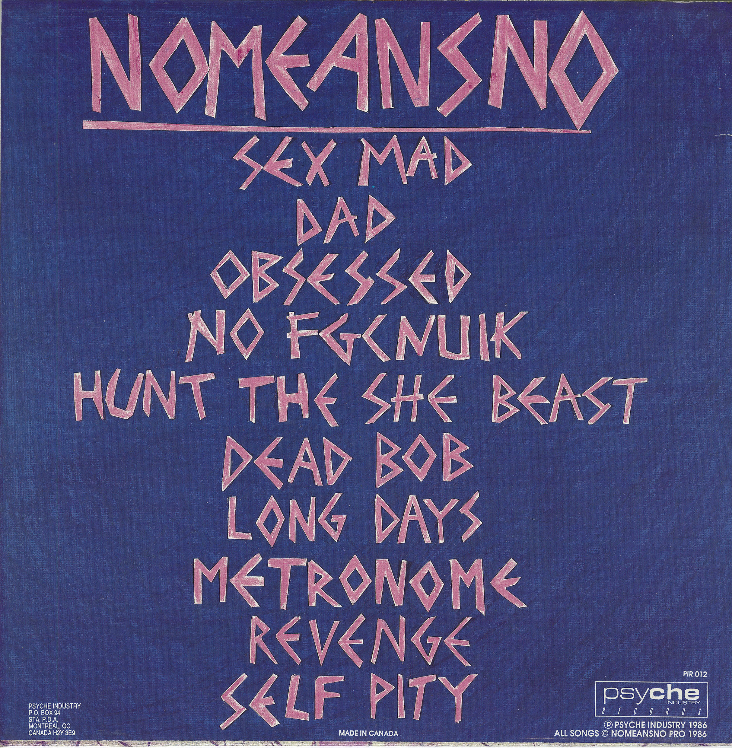 Around 1985, there was a "punk" club on Toronto's Bloor St. called Ildiko's (later, The Bridge), where most of the punk bands around played including mine, supporting NoMeansNo. We were sitting on our borrowed Peavey amps watching the band members set up their equipment for soundcheck, thinking, "these guys are going to suck". I mean, they definitely didn't look very "punk": the drummer looked like a dork and the bassist looked like my dad. Well, then they launched into "Sex Mad". After we finished picking our collective jaws up off the floor, I ran to the phone and told my friends to come down as soon as possible, because this was going to be a show not to be missed. Of course, only nine people showed up. But those nine people walked out of Ildiko's changed forever.