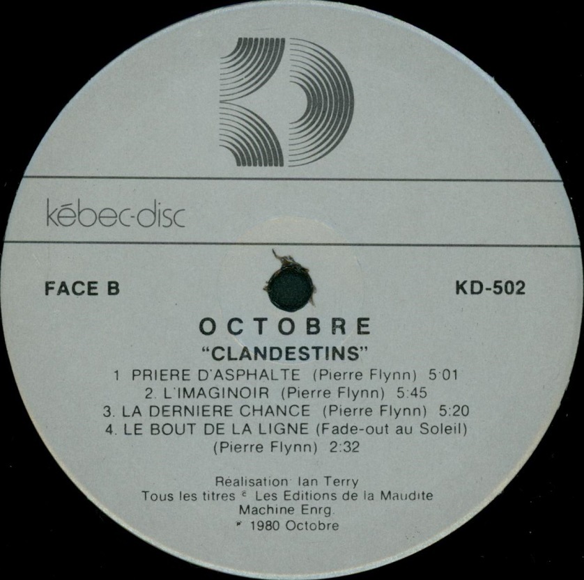The group’s early recordings established a sophisticated blend of progressive rock and jazz-rock, marked by complex arrangements, shifting time signatures, and Flynn’s literate, socially aware songwriting. Their self-titled debut and the follow-up Les nouvelles terres (1974) positioned Octobre as peers to the era’s leading Québec progressive acts, though their sound was often more angular and urban. With Survivance (1975), released on the Trans-World International label, the band sharpened its musical focus while retaining an exploratory edge, expanding their palette with richer vocal harmonies and more concise compositions.
