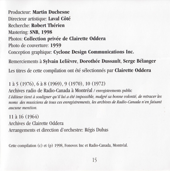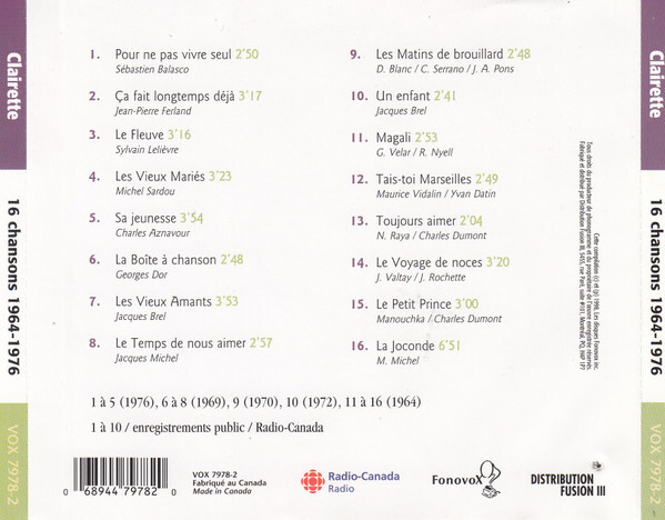 Clairette 16 Chansons 1964-1976 CD case back cover
