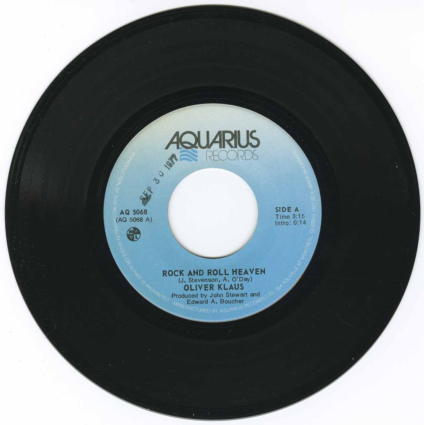 Oliver Klaus - Rock and Roll Heaven b/w Take My Mind, Take My Soul