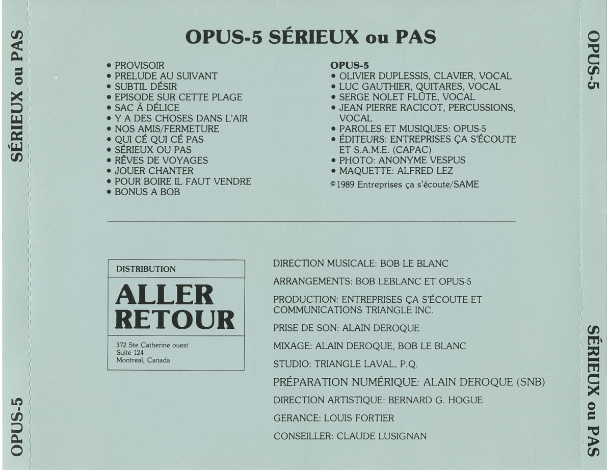 Engineered and mixed by Alain Deroque, Bob LeBlanc