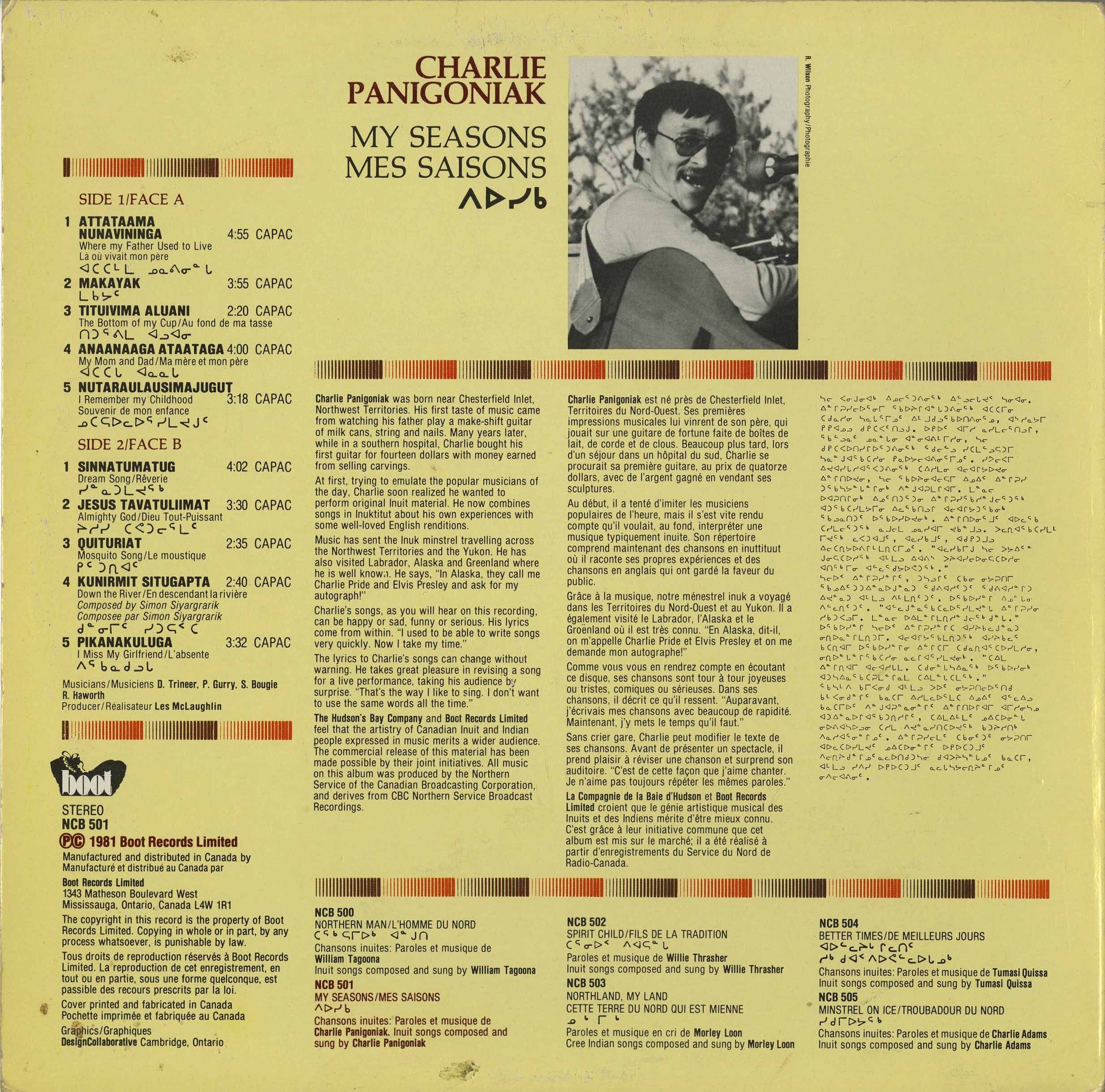 My favourite song from Charlie Panigoniak's My Season album is "Anaanaga Ataataga". On one of Charlie's radio sessions he spoke recently about the decay sound he use to be able to produce when singing, but is now unable to do. He was happy he did some recordings and enjoyed making people laugh during his performances.