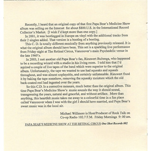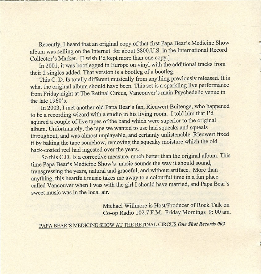 Recorded at The Retinal Circus, Davie Street June 21, 1968, Vancouver, British Columbia