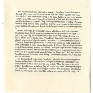 Craig "Papa Bear" Wood: vocals, guitar, banjo