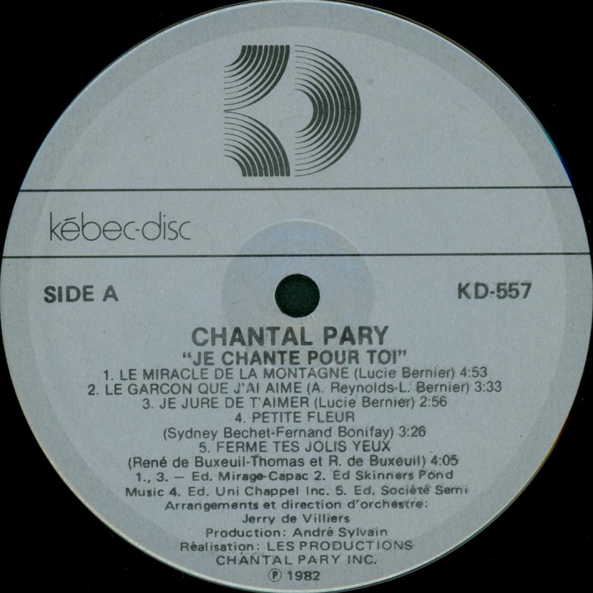 "Je chante pour toi" Face A