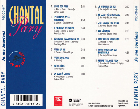 Je Me Souviens CD case back cover