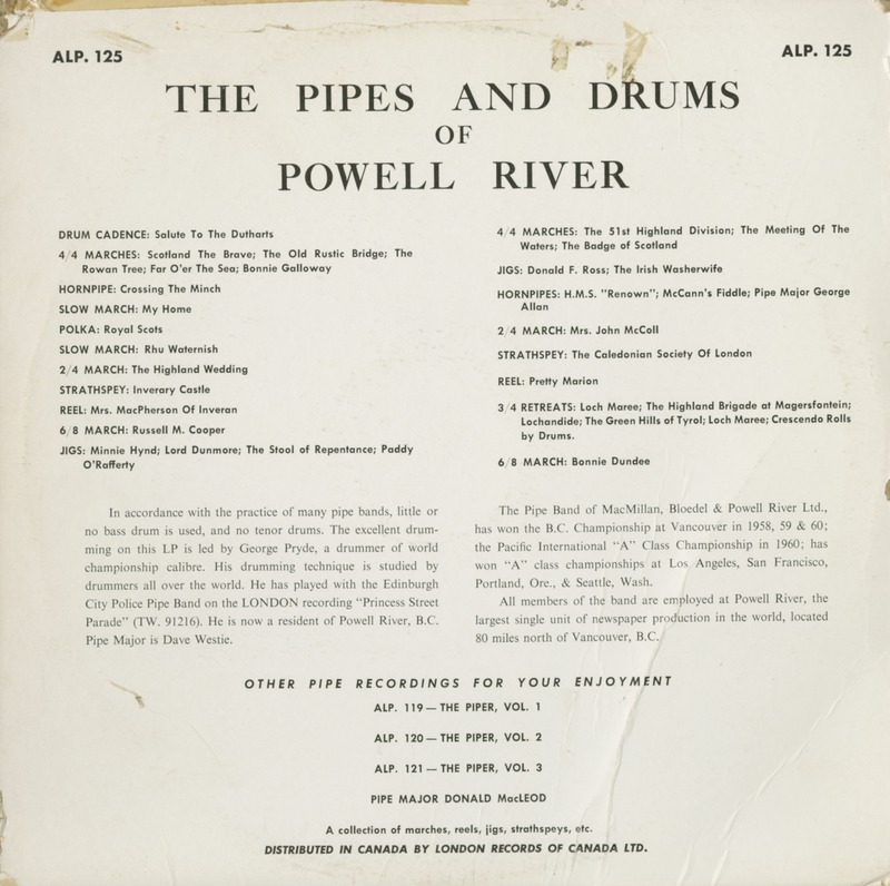 Pipes and Drums of Powell River - MacMillan Bloedel & Powell River Ltd