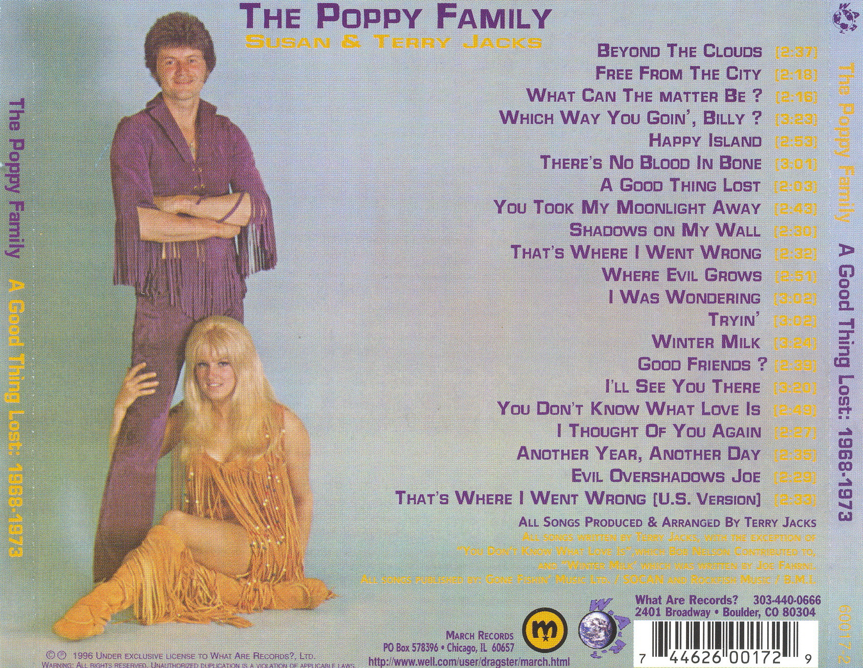 I think that everyone, from the most jaded âindie-rockâ consumer to the casual pop radio listener will be able to appreciate these lost recordings from The Poppy Family. Weâve titled this collection âA Good Thing Lostâ even though itâs really âa good thing found.â We hope you agree. Thank you, Terry & Susan.