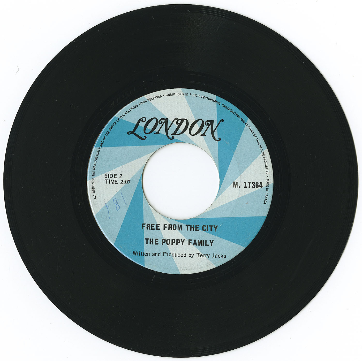 The Poppy Family’s definitive sound took shape with the addition of Satwant Singh, a classically trained Indian percussionist who played tabla and other hand drums. Singh’s arrival in 1968 expanded the trio’s palette into territory few North American pop groups were exploring. The group’s early singles were recorded in Vancouver and reflected the hybrid that would define them: folk inspired melodies, lush string arrangements, West Coast psychedelia, and the rhythmic grounding of South Asian percussion. Their debut single, Beyond the Clouds, introduced Susan’s clear, unaffected vocal style and Terry’s preference for understated but emotionally direct lyrics. Its flip side, Free From the City, hinted at their growing interest in blending pop structure with non Western textures.