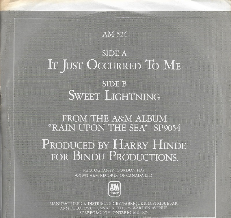 It Just Occurred to Me b/w Sweet Lightning Back cover