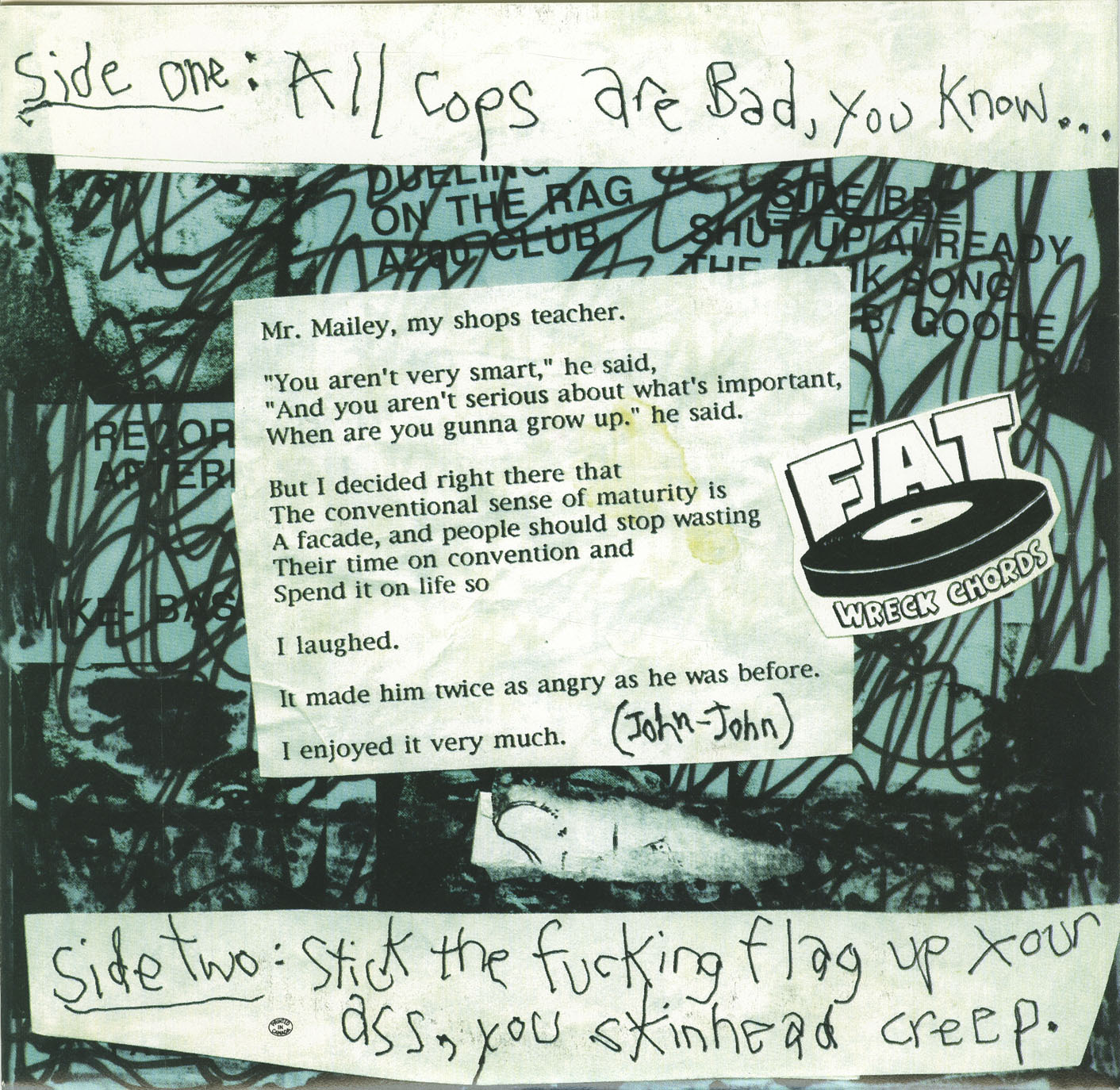 Side two: Stick the fucking flag up your ass, you skinhead creep.