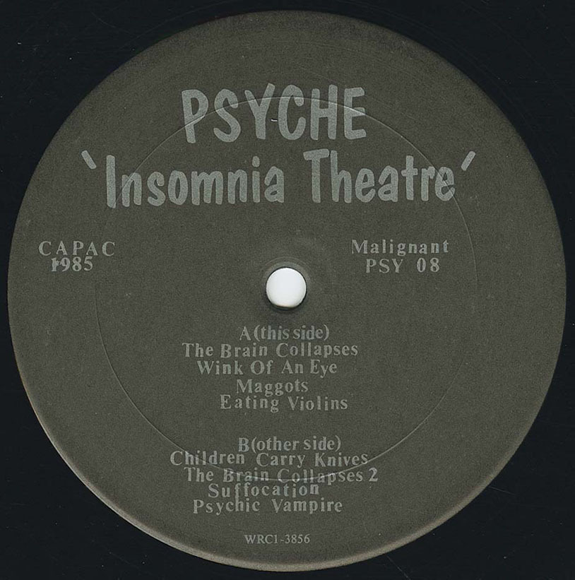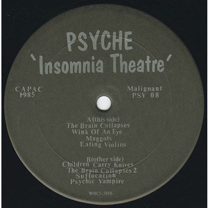Self-released in 1985 as a single LP, Insomnia Theatre was Psyche's first album. Its brilliant style mixed dark electronics, new wave, industrial, and horror in ways that--back then--were quite shocking to its first Canadian audience, and which today are seen by synth music aficionados as a master work. With classic cuts The Brain Collapses, Maggots, Eating Violins, and Children Carry Knives, the album made its way to Europe where it was licensed by the pioneering French New Rose label. It also drew accolades from Melody Maker and NME, both of whom loved the record.