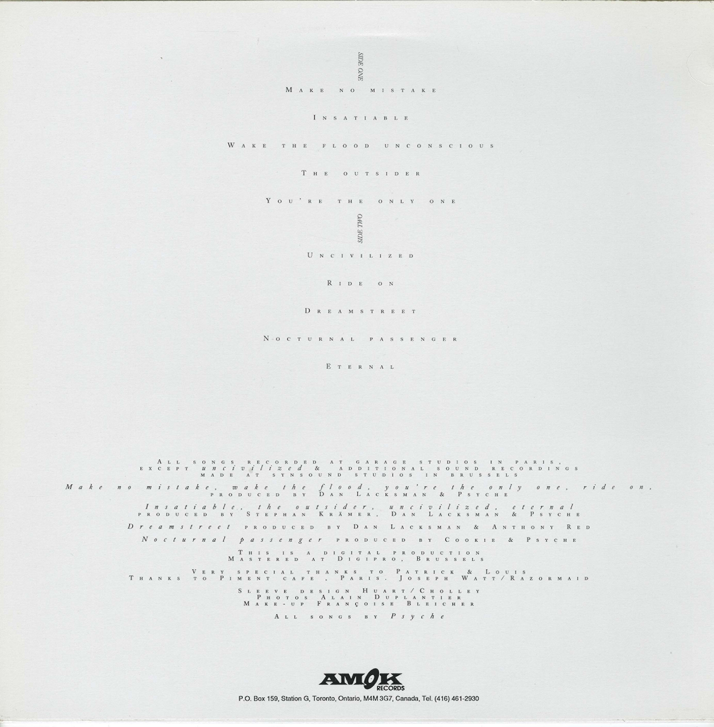 Following the success of Insomnia Theatre and Unveiling the Secret, Psyche turned to a classic wave sound on their third and most polished album, Mystery Hotel. While the industrial influence heard on earlier material is less pronounced, Mystery Hotel is in many ways the darkest Psyche album. The demons are alive on tracks like Wake the Flood Unconscious, Nocturnal Passenger and The Outsider, and even poppier numbers like Eternal and Insatiable are, at their core, still melancholia at its finest.