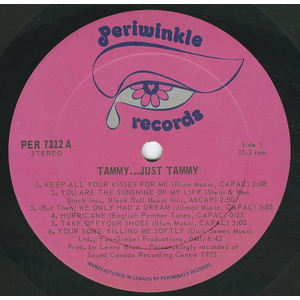 RPM quickly took notice. Her debut single “Find Yourself a Boy” drew early regional momentum, receiving playlist support across Ontario, with strong spins at CKOC Hamilton and CKWS Kingston and chart action at CHEX Peterborough. RPM highlighted her promotional push, including a well-received interview with Betty Kennedy of CFRB and a half-hour television special taped for CHEX-TV in Peterborough on August 6, 1973. CKOC’s influential music director Nevin Grant championed the record, helping drive broad Ontario exposure; Periwinkle even issued promo kits and T-shirts to support the campaign. …Just Tammy entered the RPM 100 Albums chart on July 21, 1973, rising steadily to #37 on September 29. The LP remained on the chart through the fall and reappeared in recurrent listings throughout 1974, an impressive run for a young independent artist.