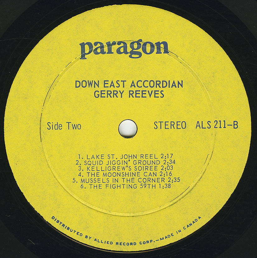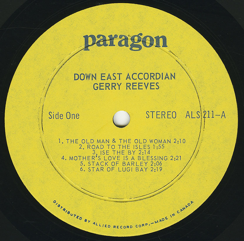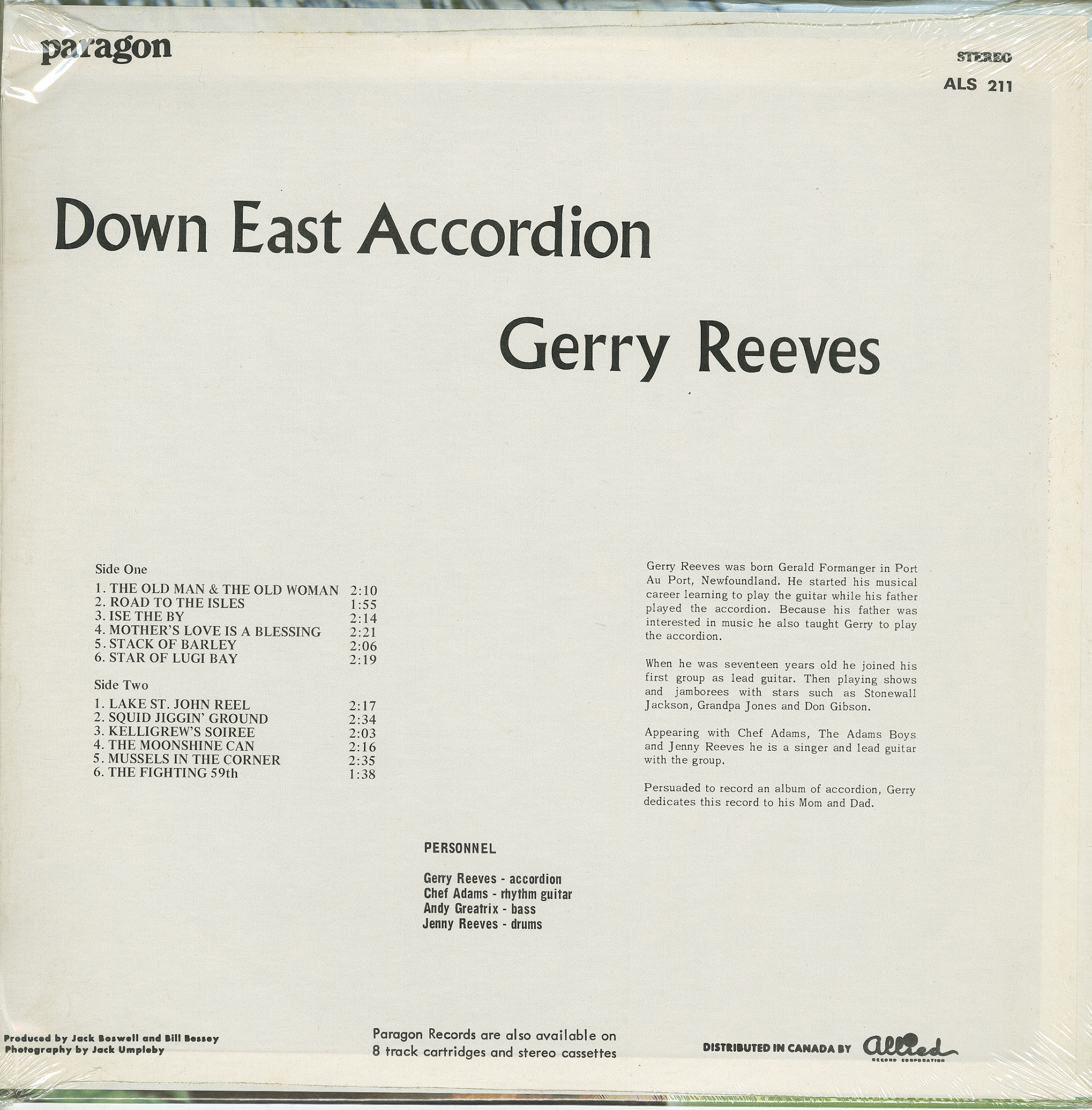 Gerry Reeves (husband of Jenny Reeves) was an accomplished and talented musician, playing guitar on many albums (including those of his wife), and releasing this album of accordion music on Marathon Music.
