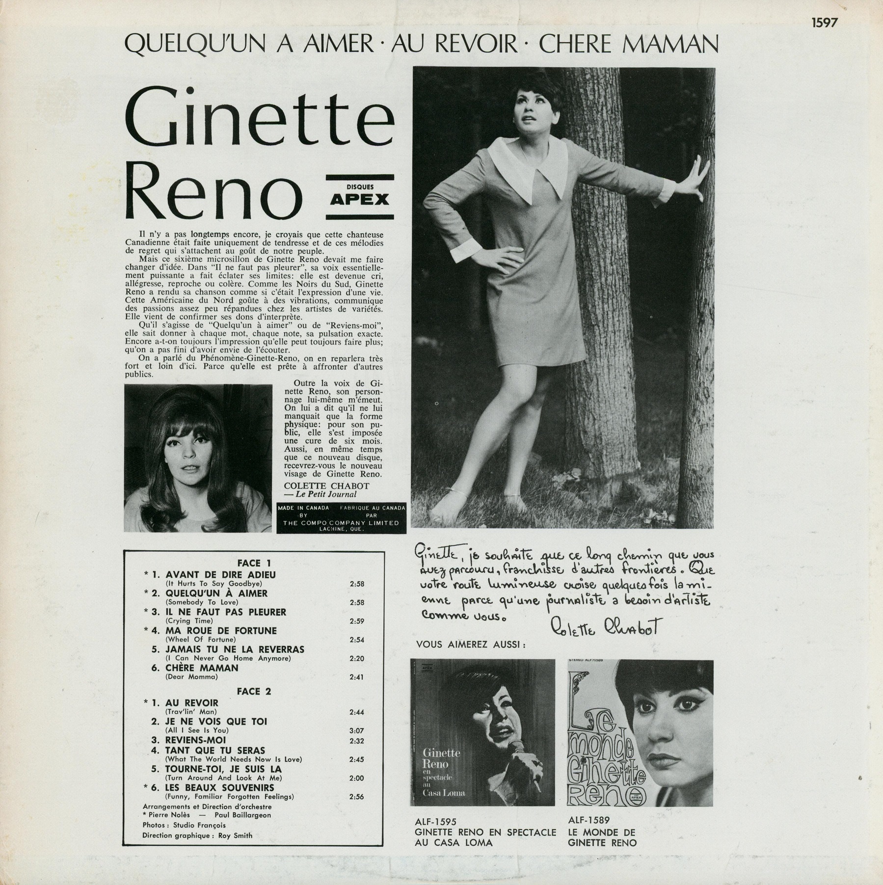 Quelqu'un à aimer Back cover