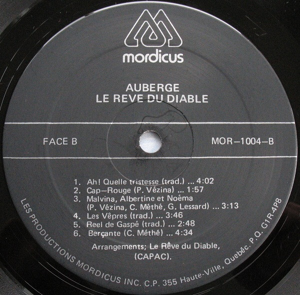 Auberge Record sleeve (back)