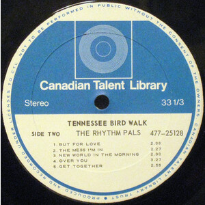 On record, The Rhythm Pals left a deep catalogue that charted the growth of Canadian country recording. Their first 78s were cut for Aragon in the early 1950s, including sessions with singer Juliette, followed by LPs on Arc, Decca, Banff, Arpeggio, CTL, Spindrift, and their own short-lived Pals label. Their recordings drew on a wide repertoire—cowboy standards, sentimental ballads, gospel hymns, and contemporary pop-country crossovers. Signature numbers included “Blue Shadows” (their radio and TV theme), the Canadian standard “Bluebird on Your Windowsill”, Bob Nolan classics like “Cool Water” and “Tumbling Tumbleweeds,” and later favourites such as “Never Ending Song of Love” and “Lead Me Gently Home.” The 1976 double-album The Rhythm Pals 30th Anniversary (later reissued as The Best of the Rhythm Pals) compiled three decades of their repertoire for a new generation.