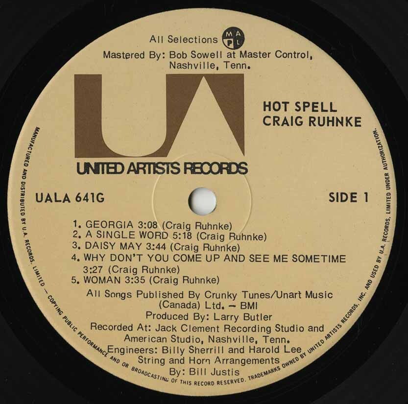 Engineered by Billy Sherrill and Harold Lee