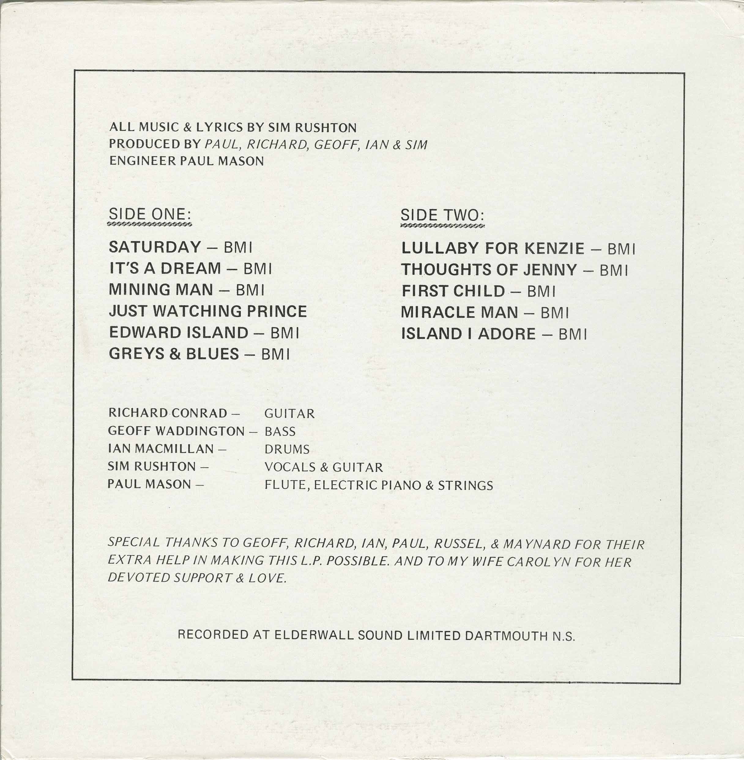 While in Cape Breton, Sim would open concerts for Susan and Terry Jacks “The Poppy Family“, John Allen Cameron, and Kenzie MacNeil. Kenzie introduced Sim to a CBC radio producer, Ira Stewart who eventually would record 4 of Sim's originals on a Radio Canadian Broadcast recoding LP. The LP also featured the Sable Island Choir, Shelly Brown, and Flute “N” Flugal. This would also lead Sim to appear to several CBC TV programs “Touch The Earth” and several others. In the fall of 1976 Sim with the support of other musical friends and musicians would begin to record his first LP “From Me To You” in Dartmouth, Nova Scotia.