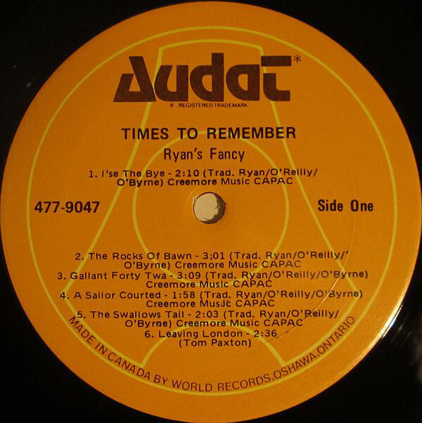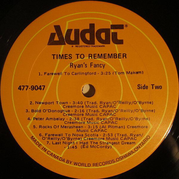Collectively, Ryan's Fancy ramble through life spreading happiness and good times wherever they go. They sing their songs with a right good will and enjoy singing them. Their audiences enjoy hearing them and always come away from a performance feeling better for having been there. Catch them "live" if you can at all, or lend an ear to this record and I know that Ryan's Fancy will tickle your fancy, just as they have mine.