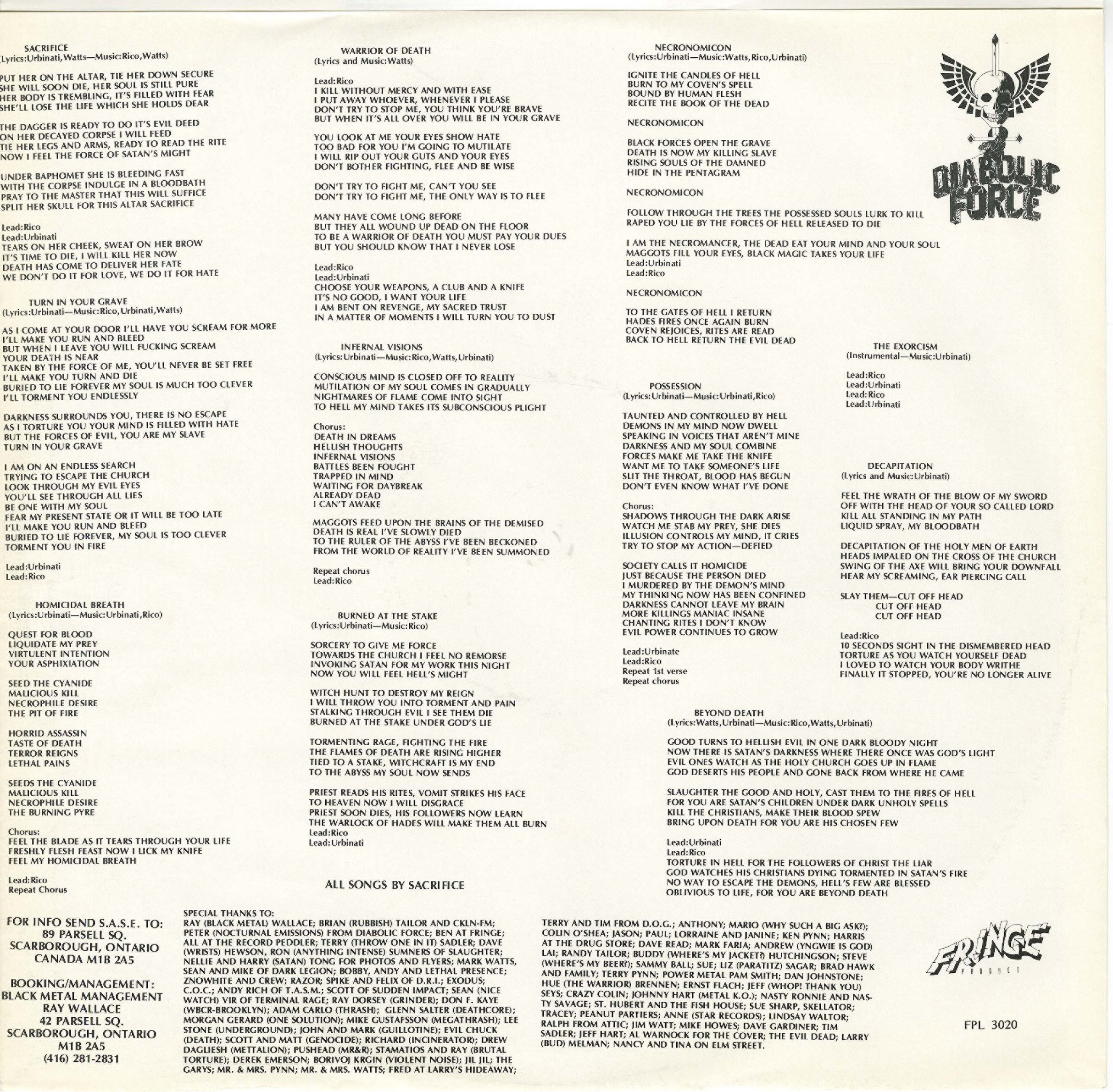 Recorded at Future Sound Studio, Toronto, Ontario