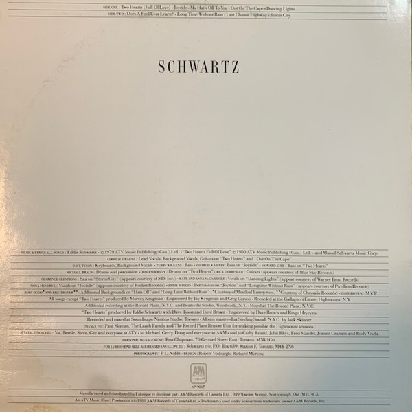 Schwartz first emerged publicly as a recording artist in the late 1970s after signing with A&M Records. His debut album, Schwartz (1980), introduced a clean, guitar-driven sound paired with warm, soulful vocals. The follow-up, No Refuge (1981), delivered the breakthrough: “Special Girl,” a shining slice of pop-rock that became a major Canadian hit and later an international chart success through recordings by America, Eli Ingram, and others. Schwartz’s version remains a staple of early-’80s CanRock and one of the decade’s defining crossover singles. His third A&M album, Public Life (1984), broadened his palette with more contemporary production touches and further established his dual identity as both recording artist and sought-after songwriter.