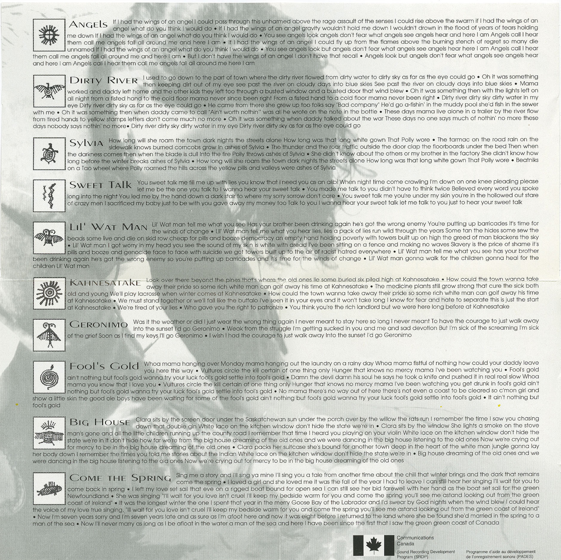Look over there people there’s another stand When the old ones line smoke blind side Piloted high at Kahnestake How could the town wanna take away their pride so some fat white man can get away this time at Kahnestake a The medicine plants still grow strong that cure the sick both old and young We’ll play lacrosse when it’s safe Kahnestake How could they remove and control it’s still their own in plain view the white man can not own ours It’s the call of Kahnestake a We must stand together or we will be suffocated I know it in my eyes when I went that long low fence for the sacred to separate this is the issue it’s Kahnestake a We’re tired of yours a Who gave you the right to partition a You think you’re the landlord but we were here long before at Kahnestake