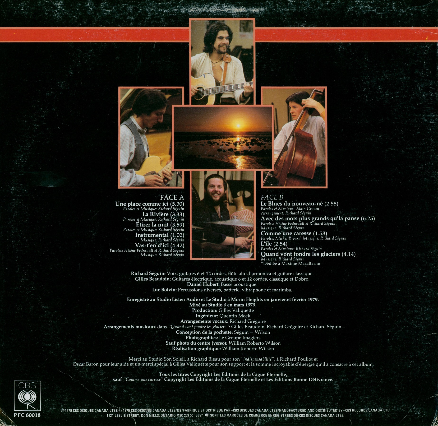 Richard Séguin: vocals (A1–B5), 6-string acoustic guitar, 12-string guitar, classical guitar, alto flute, harmonica