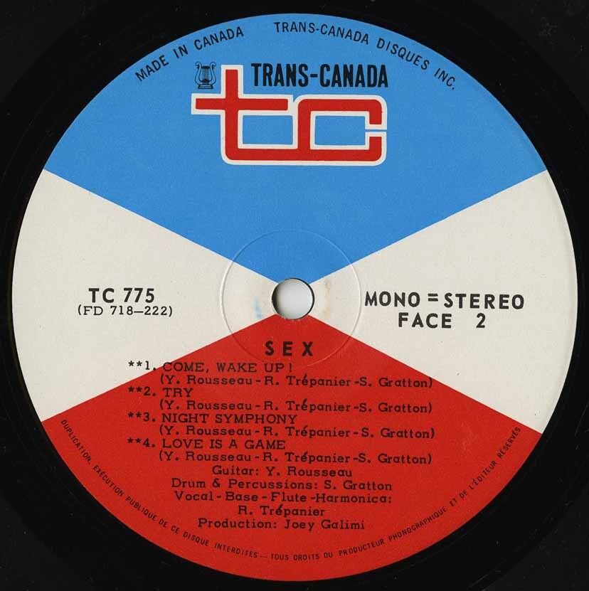 A French Canadian band from Montréal, Québec, whose lyrics are English. Both their albums are now rare. The first leans very much towards hard rock with sledgehammer drums, thundering rhythm, furious guitar leads and wasted vocals. There's some nice woodwind on 'Come, Wake Up!'; some pleasant mouth harp on 'Try' and some fuzzy guitar on 'Night Symphony' and 'Love Is A Game'; but overall the menu's heavy-handed bluesy hard rock. The first 45 was culled from this album. All the material was penned by Gratton, Rousseau and Trépanier. The lyrics are very much in the spin of their name, particularly the final cut and I Had To Rape Her. For hard rockers only!