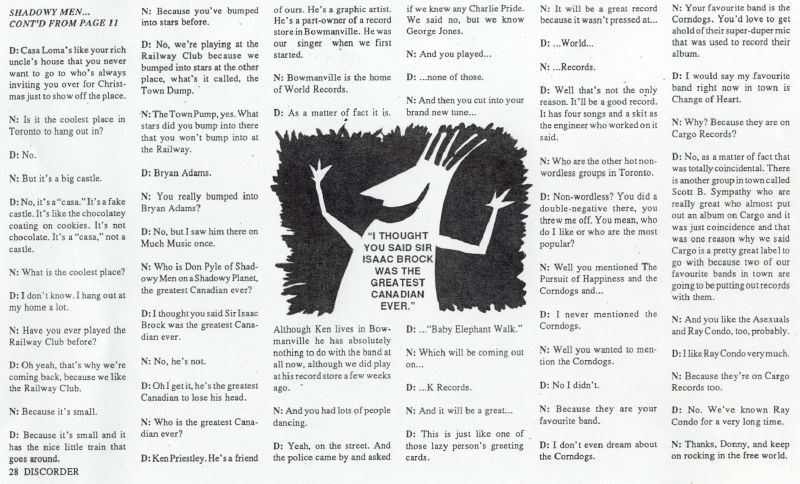 D: As a matter of fact, it is. Although Ken lives in Bowmanville he has absolutely nothing to do with the band at all now, although we did play at his record store a few weeks ago.