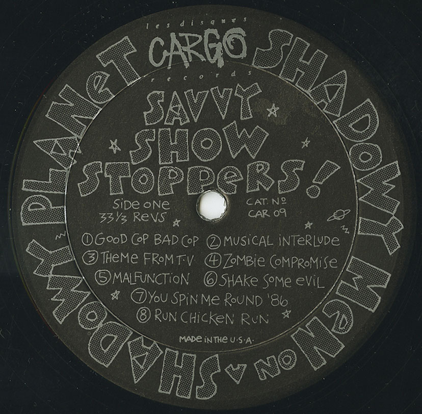 D: It was approximately 46. It might have been 49. But it was definitely more than 45. Some people without pitch control had to play it at 45, but those that did got the real sound. We have a really crappy independent record making company in Canada called Worls Records which I'm sure a lot of people even in Vancouver probably know about. They mastered it too slow for some reason, maybe because they felt like it, so we had to get this rubber stamp made that said "46 RPM" on it.