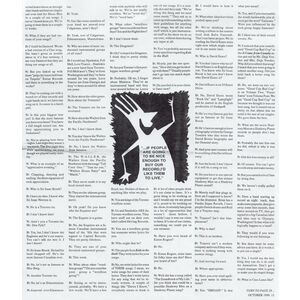 D: The distribution was all doen pretty much through ourselves. We sold them at shows. More are more, there are no distribution companies for seven inch records... Mostly, those were done like; you have one person who runs a distribution company who heard you on John Peel's radio show or something and finds our your address and writes to you and saysm "Send me fifty records, please."