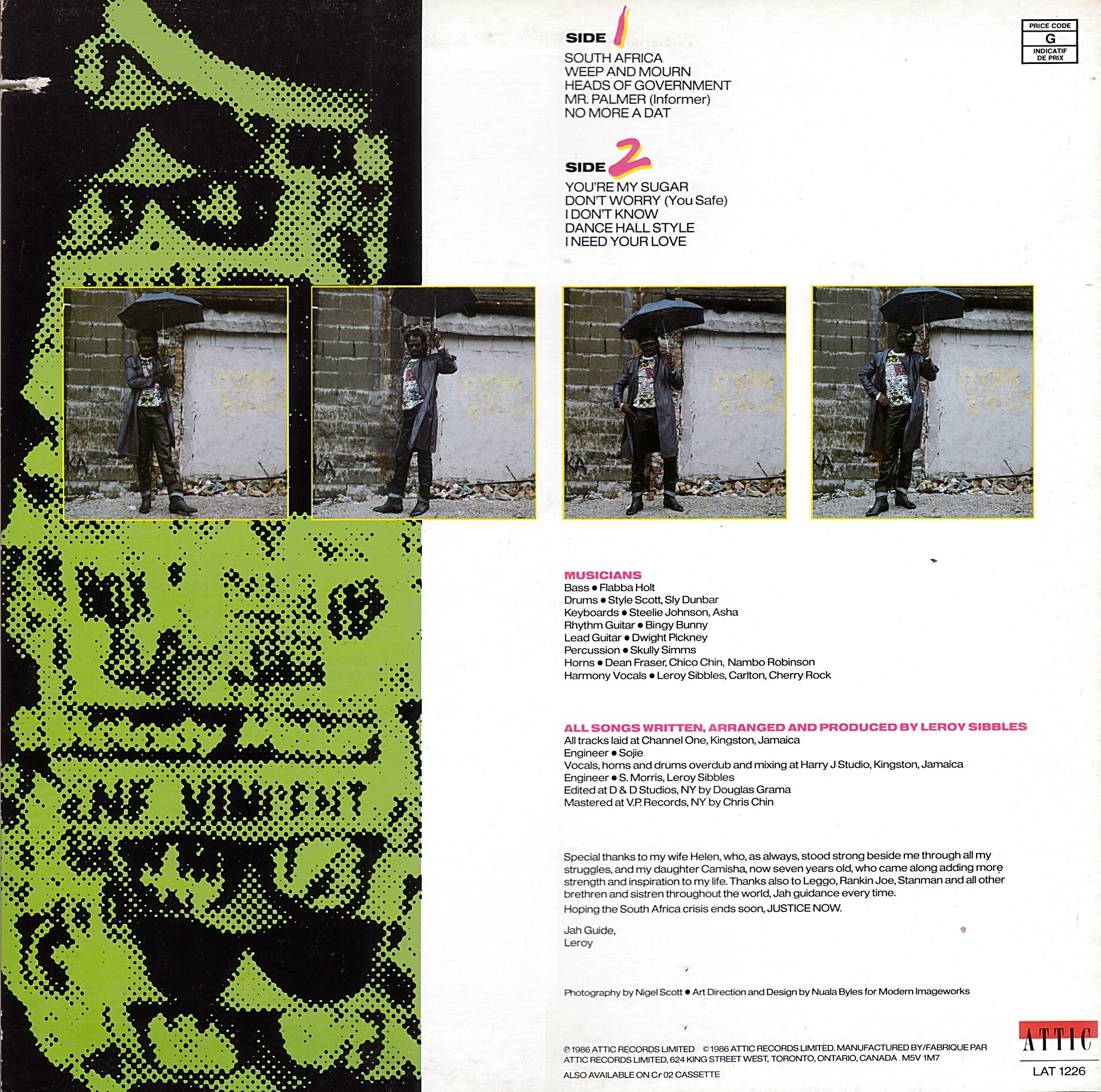 Sibbles also lived in Canada for a number of years in the 1980s. While in Canada, he won a U-Know Award for best male vocalist in 1983, and a Juno for best reggae album in 1987. He is responsible for many of the classic reggae basslines in addition to his great contribution to reggae music vocals.