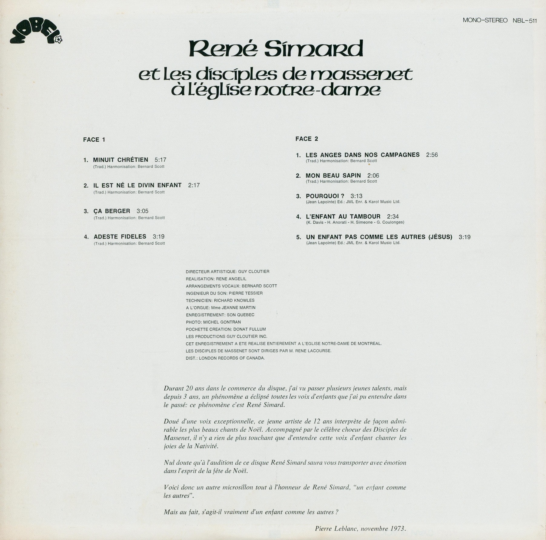René Simard Et Les Disciples De Massenet Back cover