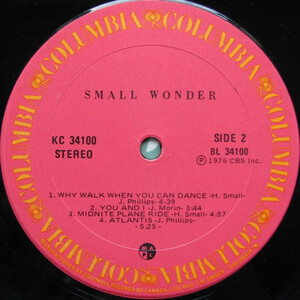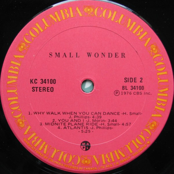 West coast symphonic pop band featuring former Scrubbaloe Caine frontman Henry Small. Released two albums for Columbia 'Small Wonder' in 1976 and 'Growin'' in 1977. Bill King was not featured on the second record and drums were done by legendary session drummer Ed Greene.