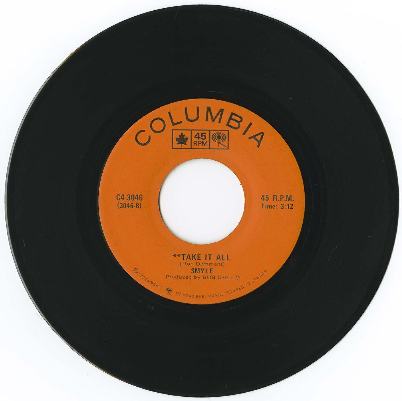 By late 1971 they were back in the studio with producer Bob Gallo, recording new material by Demmans, Durritt, and Gallo himself. Unfortunately, the gap between releases hurt their momentum. When “It’s the World” / “Everybody’s Singing” arrived in March 1972, the buzz had cooled. Another single, “How Many Roads Can You Fly” / “Take It All,” fared no better that summer. Columbia, having signed a large stable of Canadian acts, began cutting back on those who weren’t breaking through, and Smyle was quietly dropped.