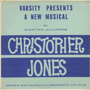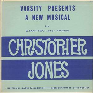 "The 1960 All-Varsity Musical tells the story of a young man making his way in the world of big business. The hero arrives in town full of ambition and joins the Lovely Lady Manufacturing Company with the exalted rank of Elevator Boy.The rest of the show describes his swift rise to control of the company, and his equally swift descent when he runs afoul of the company's unscrupulous managing director, Percy Blifil, who has a few ambitions of his own. But Christopher salvages something from the wreck of his career - the bosses daughter,Stephanie Collins, who has been transformed by his love from a walking business machine into a woman who starts life afresh with him,as Mrs. Jones. In the course of the show, the audience is treated to a free-wheeling tour of various aspects of the "Organization", including the secretaries who have trouble keeping their bosses at bay, and the Sales Executives who are so well drilled that they move in unison to a tune called "The Organization Waltz". This record attempts to capture the gaiety, vitality, and satiric bite which has made "CHIRSTOPHER JONES" one of the liveliest college musicals in years."