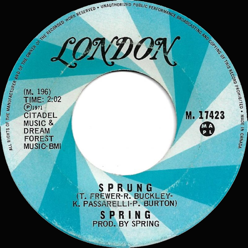 The debut recording by Spring was a funk-rock tune called “Bring Yourself Down to Earth, Lovin’ Blues Baby.” It was included in 1969 on the Cool Aid Benefit Album, a various-artists charity compilation. In 1970 Spring released their debut single, “As Feelings Go“. As it happened, the original master was lost when the wrong button was hit by someone during a replay session. So what was felt by the band to be a mediocre recording that ended up charting into the Top 30 in Vancouver. A second single, “It’s a New Day”, was pressed as a promotional copy only. But got passed over. After the success of “A Country Boy Named Willy” in the spring of 1971, Spring was being touted as an eclectic mix of the Hollies, the Small Faces and the Byrds. as well. Frewer’s crisp, clean style is definitely to be admired.