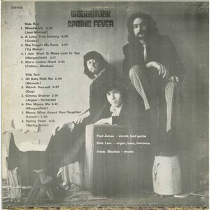 Spring Fever was a garage-charged Canadian power trio from Toronto, Ontario, who emerged in 1970 with a rare and now highly collectible LP titled Woodstock on Paragon Records. Featuring Paul James on vocals and guitar, Rick Law on bass and Hammond organ, and Frank Meehan on drums, the group delivered gritty, soulful covers of tracks by Joni Mitchell, David Crosby, Taj Mahal, Muddy Waters, Buddy Guy, The Rolling Stones, and others—captured with crisp, straightforward production that spotlights their tight musicianship over studio excess.