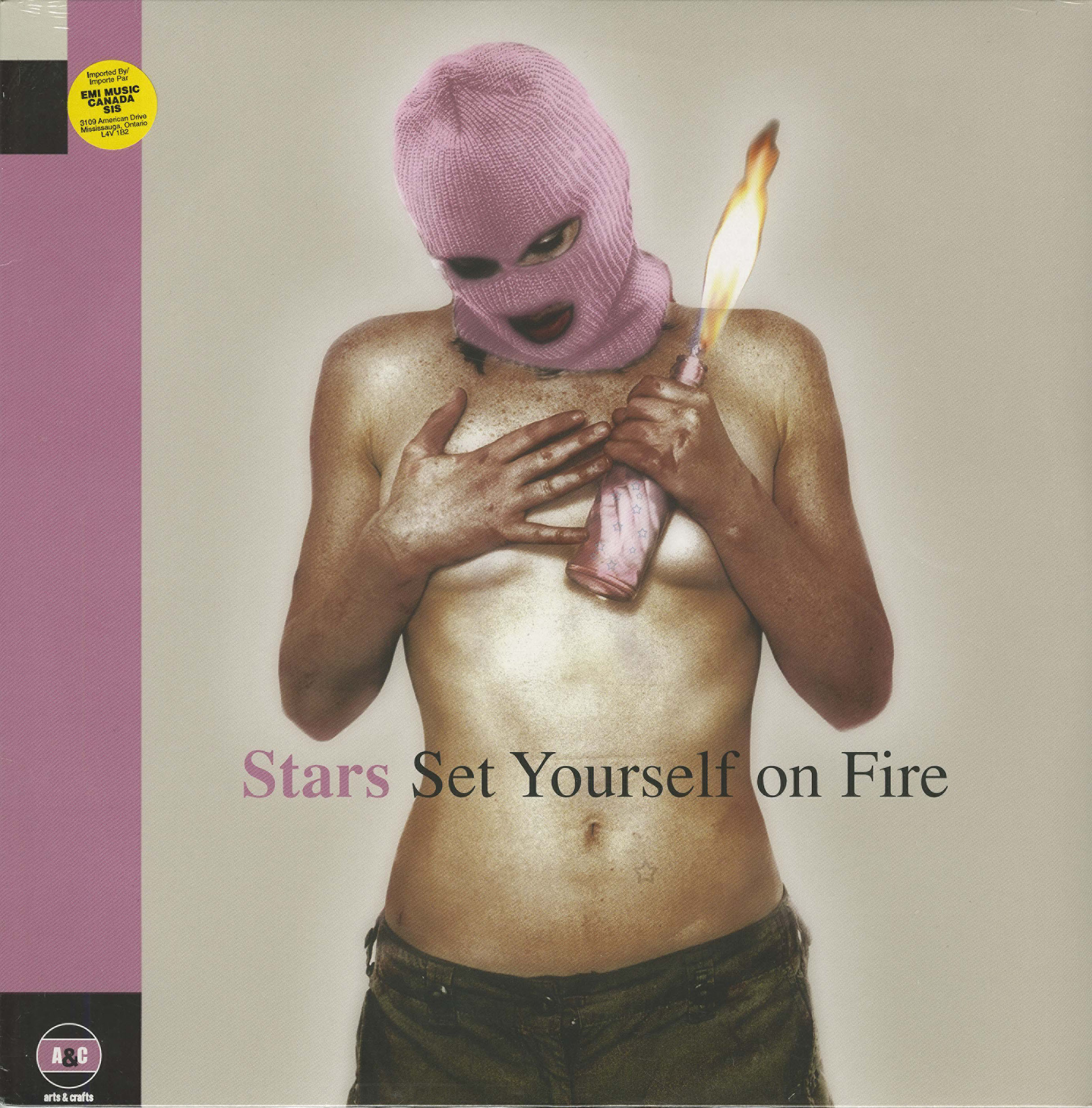 The album opens with an audio clip of a man saying "When there's nothing left to burn you have to set yourself on fire." I disagree. When I have nothing left to burn I'll go swimming, or make pottery, or play tennis. In fact, I'm pretty sure setting myself on fire is right at the bottom of my list of things to do when I run out of things to burn. Regardless, calling "Set Yourself on Fire" anything but gorgeous is a mistake that, if I have my way, could prove fatal. "Your Ex-Lover Is Dead" is one of the most beautiful songs to ever come into existence, and it alone warrants the purchase of this album. Add in a handful of other amazing pop-tunes and you're looking at one of the best pop albums ever. No joke! Stars: Amy Millan (vocals, guitar); Torquil Campbell (vocals, keyboards); Evan Cranley (guitar, horns, bass guitar); Chris Seligman (horns, keyboards); Pat McGee (drums). With 2005's SET YOURSELF ON FIRE, the Montréal ensemble Stars grows new blooms from out of its sturdy electro-pop stem. This is largely thanks to the addition of a real drummer (Pat McGee), who opens things up for the band's third full-length album. The raised hand on the cover might lead one to take this record for an angry political outcry, but if so, it's the sort one makes while falling in love at a college rally. Torquil Campbell and Amy Millan trade vocal duties and combine on rich harmonies over alt-rock frameworks painted with thick electronic pulses, sweeping horn and string sections, bass, cello, harmonica, and electric guitar. It's a combination big enough to encompass both the melodramatic grandeur of teenage emotions and the awareness that such feelings are unreliable. Like their Canadian brethren Broken Social Scene (bassist Evan Cranley plays in both bands), Stars freely collapses pop music's pigeonholes into one rich, new-yet-familiar sound. "He Lied About Death" takes a few passing jabs at George W. Bush, but this band knows their best contribution to the cause is crafting epic love songs for the people to cry and dance to, and they contribute very well with SET YOURSELF ON FIRE.