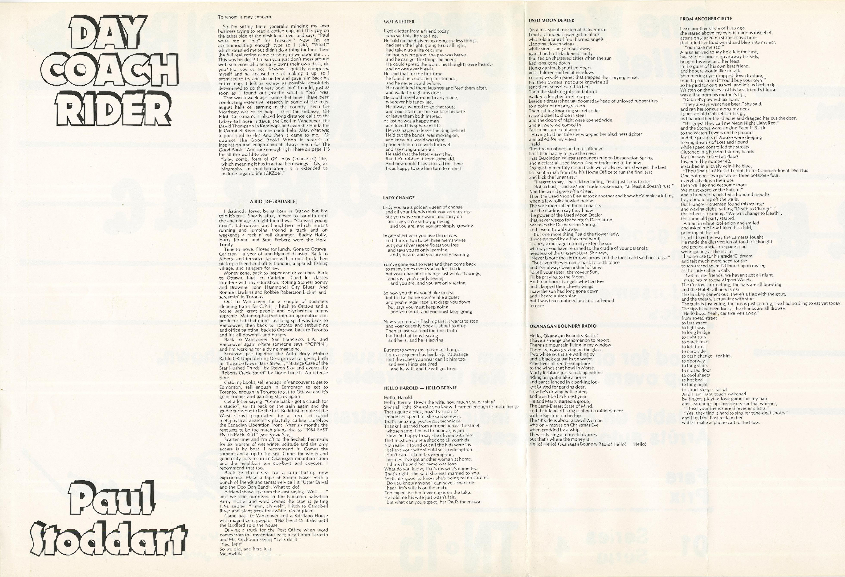 spoken word poetry by Stoddart over abstract instrumentation largely performed by Bruce Cockburn.