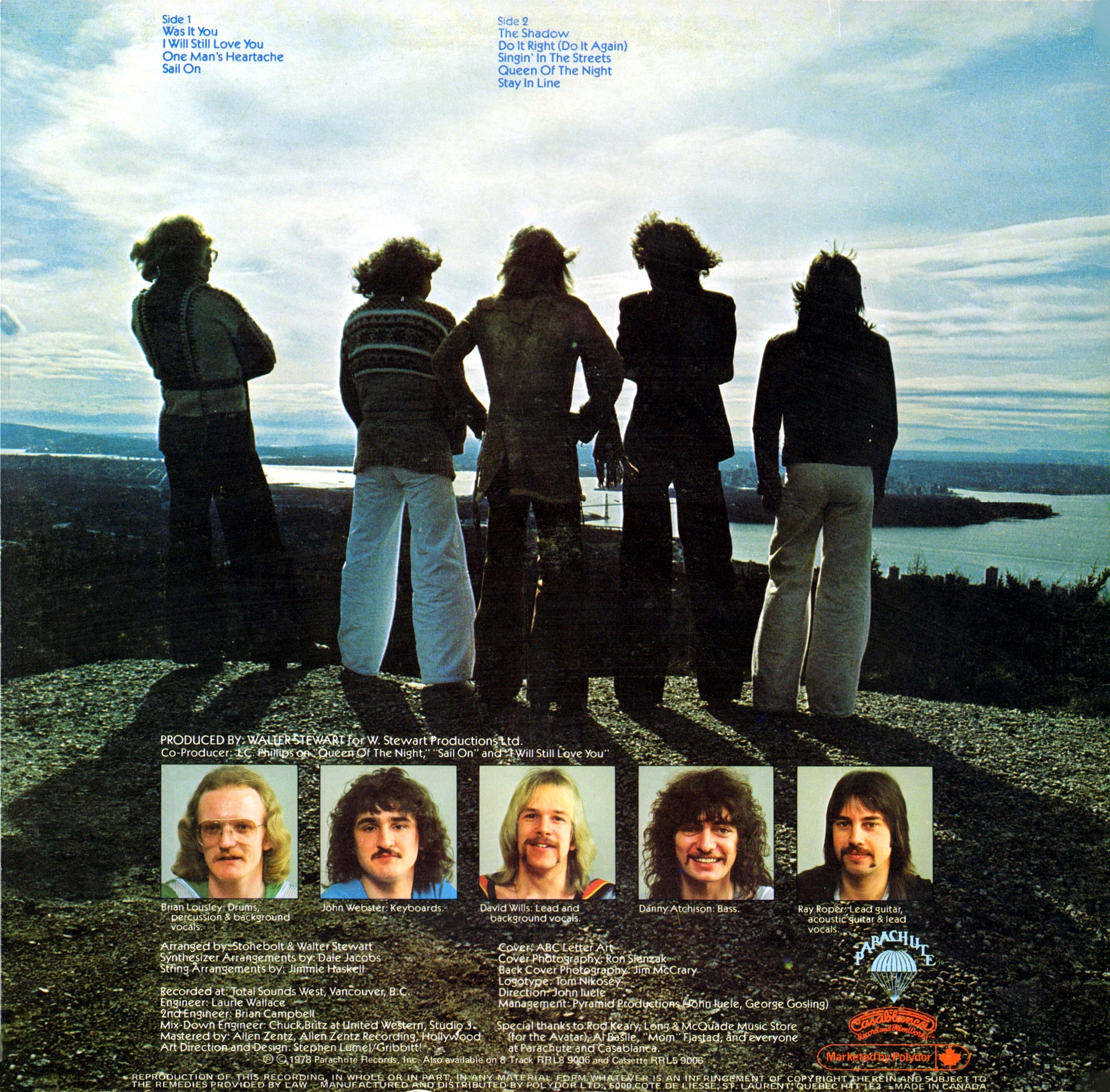 Stonebolt got their renown by playing all the bars in the local Vancouver area circuit. They recorded some demos in 1976 and the following year got noticed by Johnny Rivers’ road manager, Walter Stewart. He got Stonebolt connected to Parachute Records resulting in a contract. In 1978, their self-titled album brought forth several releases. “Queen Of The Night” peaked at #24 on CFUN in May of ’78. Their next release, “I Will Still Love You”, became an international hit, peaking at #29 on the Billboard Hot 100, and #7 in Vancouver. Their third release from their debut album was “Was It You.”