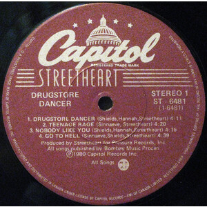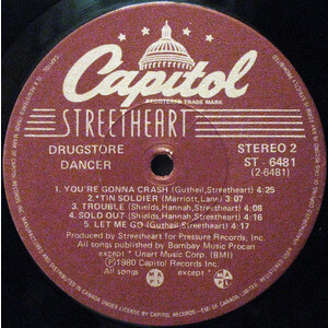 With the opening riffs of the title track Streetheart were back to their raw selves. Featuring the hits Tin Soldier,Trouble and Teenage Rage,Drugstore was the first self-produced record by Streetheart and it put the band back on the charts earning them their third platinum album.