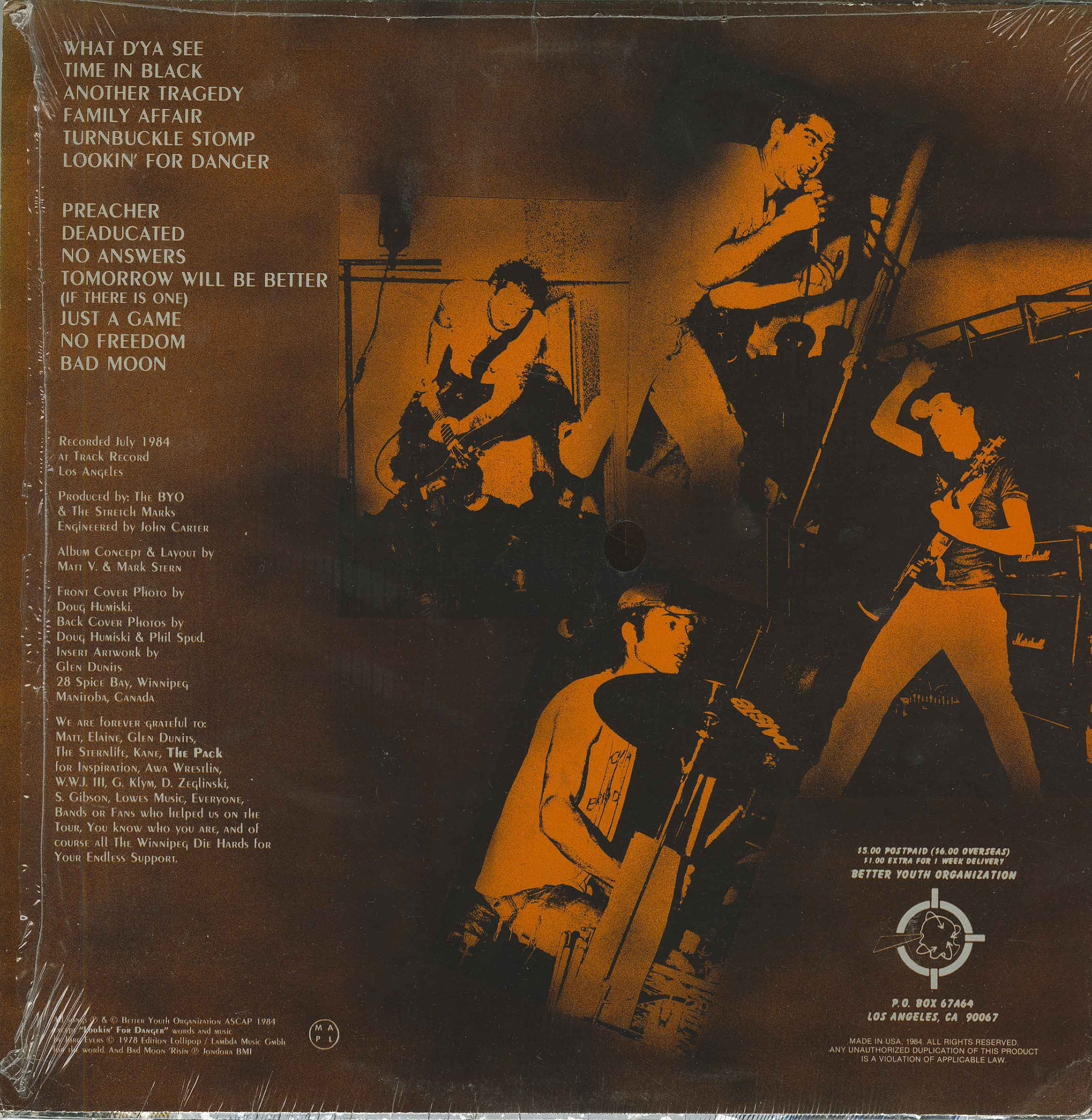 By 1984, relentless touring had sharpened the band into a formidable live unit. That summer they travelled to Los Angeles to record their only full-length album, What DâYa See, at a high-end studioâan unusual move for a Canadian hardcore band at the time. Released through Better Youth Organization (BYO), with Headbutt acting as the Canadian distribution arm, the album documented Stretch Marks at their peak. Still aggressive and fast, it also revealed a band beginning to stretch beyond pure hardcore orthodoxy. Songs like âAnother Tragedy,â âLookinâ for Danger,â and âPreacherâ introduced more dynamic structures, while maintaining the intensity that had made their reputation.