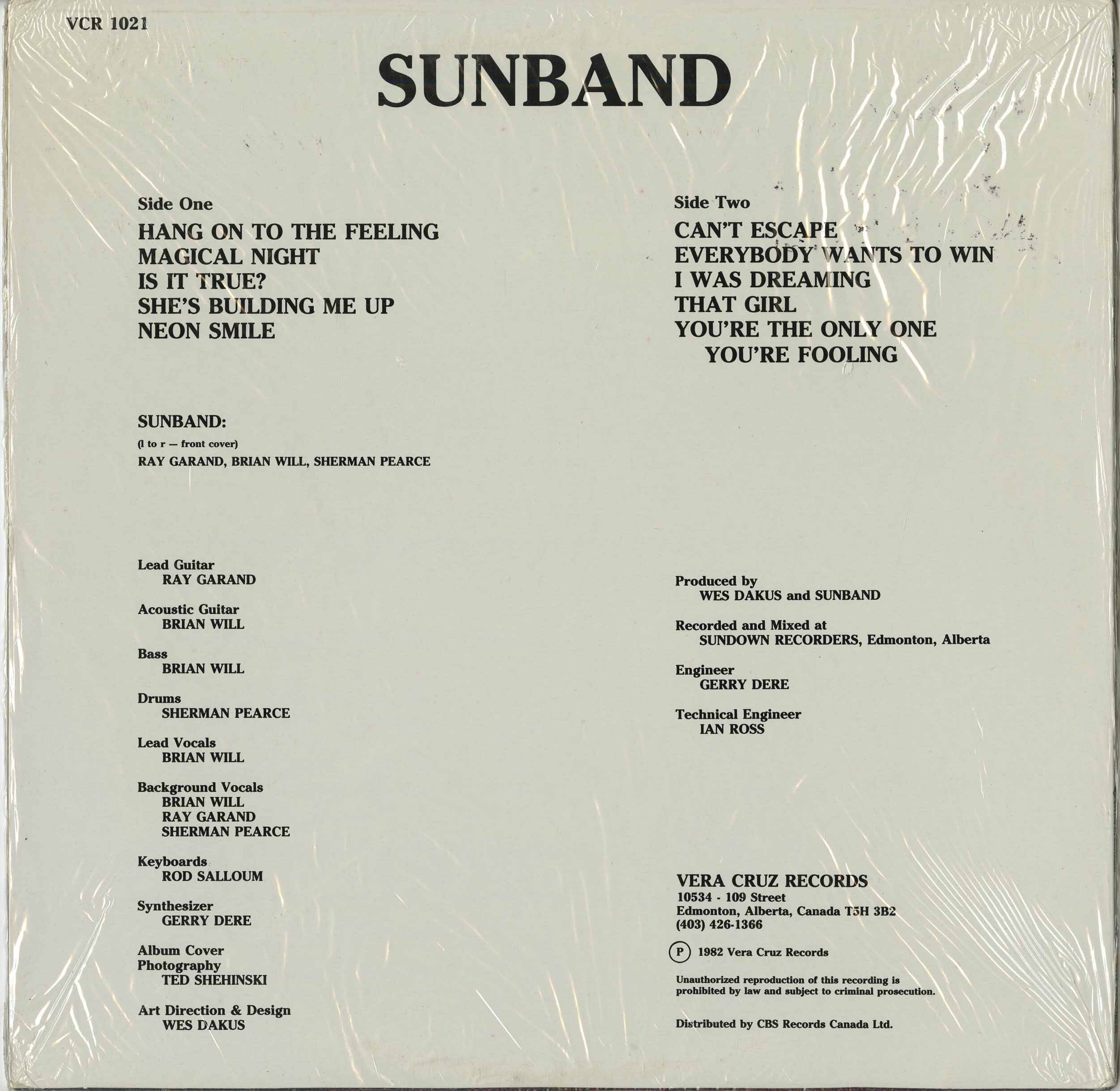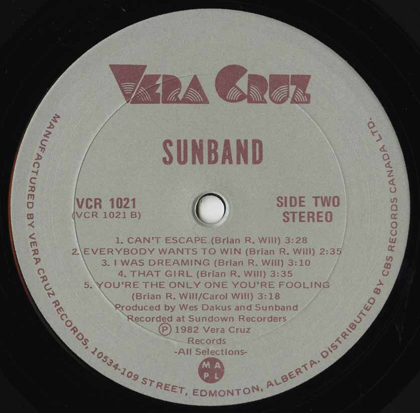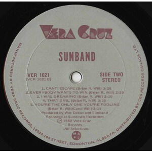 A few years later, Brian relocated to Edmonton and initiated the formation of the second incarnation of Sunband. Initially, this decision stirred some resentment within the original Sunband, but with time, those sentiments faded, and reconciliation ensued. The revamped group included Brian Will, Rod Salloum, Ray Garand (lead guitar), and Sherman Pearce (drums). In 1982, they recorded an LP under the Vera Cruz label, providing a snapshot of a distinct chapter in Sunband's musical odyssey.