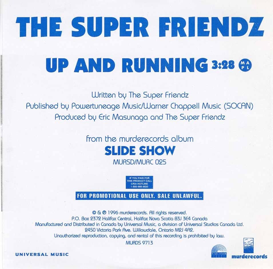 The Super Friendz’ final studio album, Slide Show (1997), is widely regarded as their most fully realized work. With Lonnie James now on drums, the band achieved a new level of cohesion without sacrificing unpredictability. Recorded at Chemical Sound in Toronto and co-produced with Eric Masunaga, the album sharpened their arrangements while retaining the restless, idea-driven quality that defined the group from the start. Tracks like ‘Citizens Banned’ and ‘Slow-Motion Blues’ reflected a band confident enough to let songs unfold on their own terms.