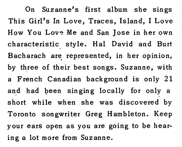 Today Suzanne stands as a small but telling artifact from the moment Canada’s biggest distributor tried to seed a low-cost, high-volume homegrown catalogue—and from the moment a young Toronto singer got a chance to step from the wings into the booth. It is a snapshot of a scene inventing itself: modest resources, clever producers, nimble studio players, and one clear voice, captured just as the tape rolled after midnight.