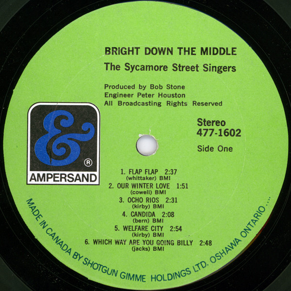 The second was a compilation for radio stations and was released on Ampersand 477-C100. It included Side A tracks from Sycamore Street Singers album on Ampersand 477-1602 and side B tracks from Side A of Johnny Cowell's album 'The Tender Loving Care ' on Ampersand 477-1601.